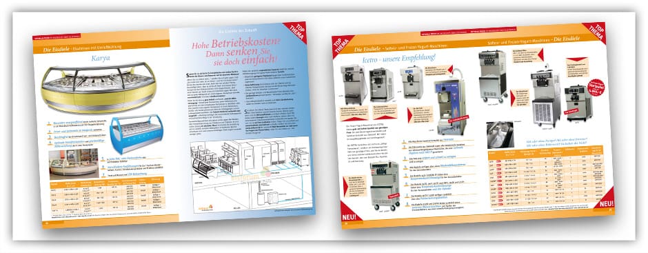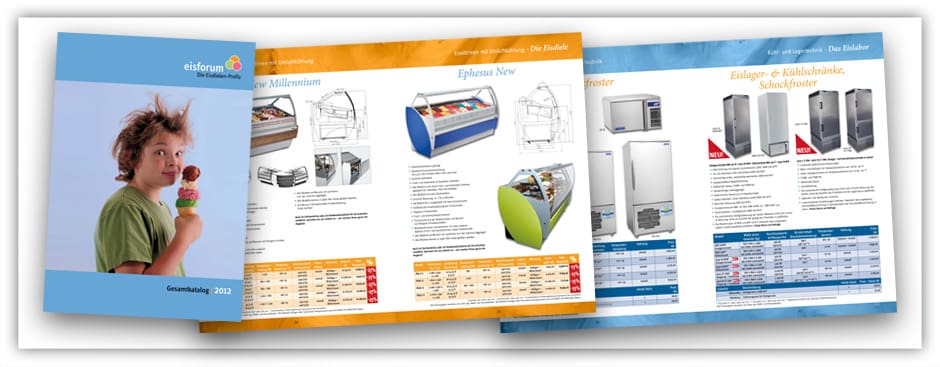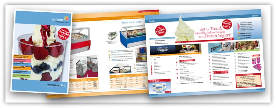 Neben dem Webshop ist natürlich der Katalog das wichtigste Verkaufsinstrument der Eisforum GmbH & Co. KG, eines Versandhandels für alles, was eine Eisdiele benötigt.
