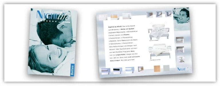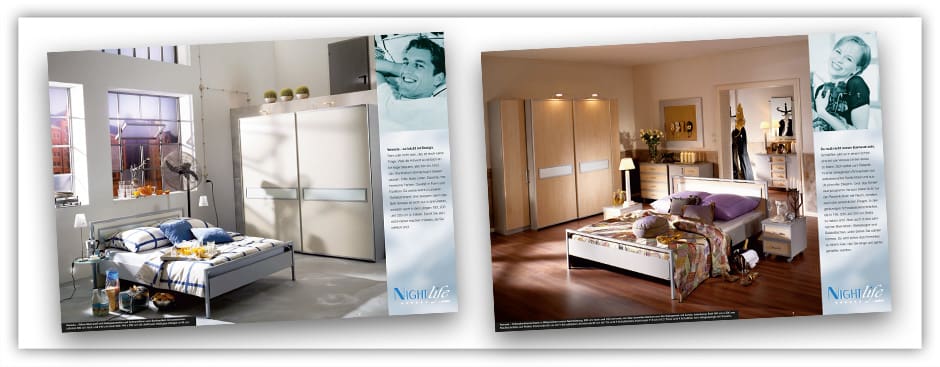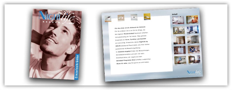 Das jährliche Katalogwerk der auf Junges Wohnen spezialisierten NOLTE Möbel Germersheim produzierten wir kostenoptimiert in 100.000er-Auflagen, und zwar von der Bildidee über die Fotoproduktion in den Vogelsänger Studios Bielefeld bis hin zu Layout, Text, Satz und Printproduktion.