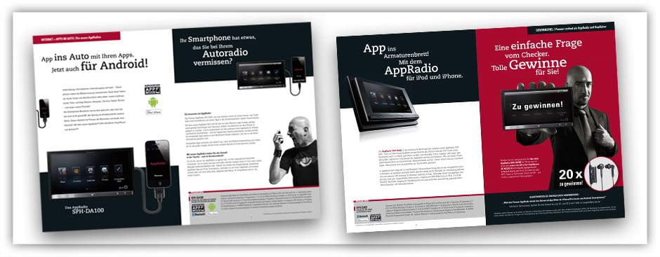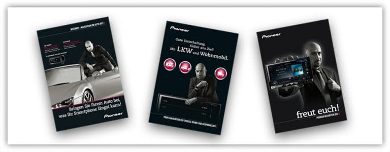 Neben Broschüren und Prospekten entwickele ich auch Anzeigenvorlagen sowie POS-Aktionen, die ich auch im CMS-System des Kunden umsetze – also auf www.pioneer.de (inzwischen www.pioneer-car.de bzw. www.pioneer-deutschland.de)