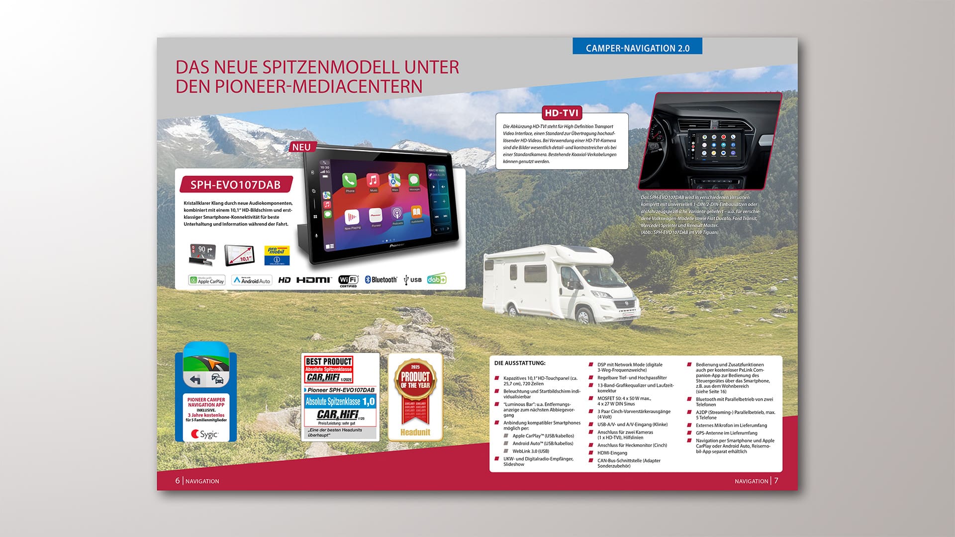 Bisher entstanden die Kataloge zum Thema Reisemobil-Navigation und -Zubehör größtenteils auf Basis von Gestaltungsvorlagen der Europa-Zentrale in Belgien. Im Lauf der Jahre habe ich das Grundlayout immer stärker verändert und 2025 sehr weitreichend renoviert.
