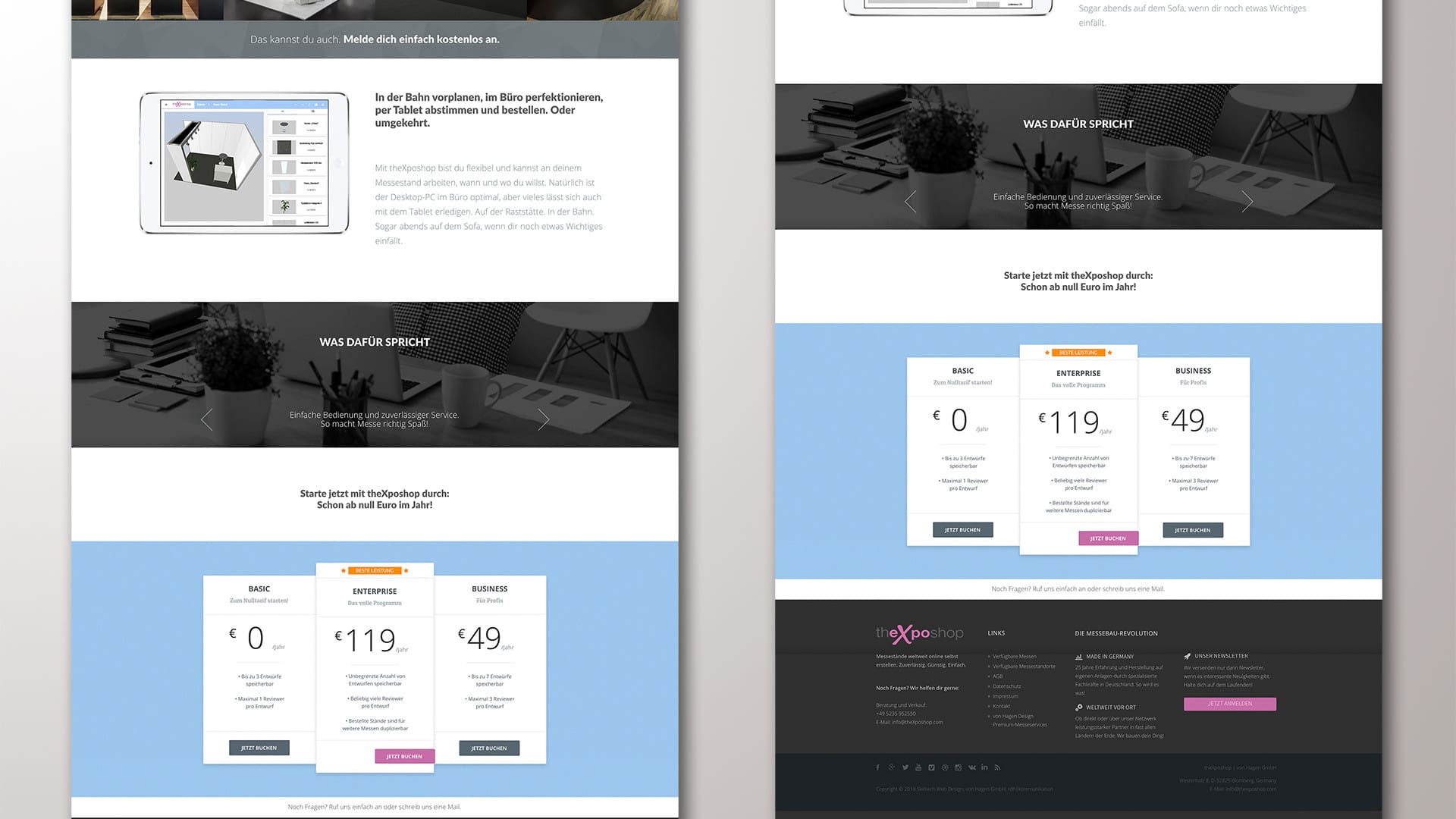 Schon vor vielen Jahren hatte der Messebauunternehmer Axel von Hagen, Gründer und Geschäftsführer des Messebauunternehmens von Hagen Design in Blomberg,, mit dem ich in den früheren 2000ern bereits eine Kooperation unterhielt, die Vision, seine Kunden eines Tages Messestände direkt online konfigurieren zu lassen und ihnen dann schlüsselfertig auf Messen weltweit zu liefern. 2017 war das dann technisch endlich möglich: theXposhop war geboren.